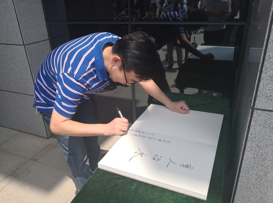 张馆长接待并带领大家参观馆内建设,之后课题组成员随张馆长一同拜谒仪祉墓园,学习李仪祉治水精神,表达敬仰和怀念之情。最后朱老师应张馆长之邀在纪念册上题字留念。此次参观课题组成员从馆内丰富的水文化物藏中体会到了深厚的水利精神,感受到从古至今水利治水的不易与科技的进步,学习了治水前辈们留下的优秀治水精神,从中获益匪浅。
