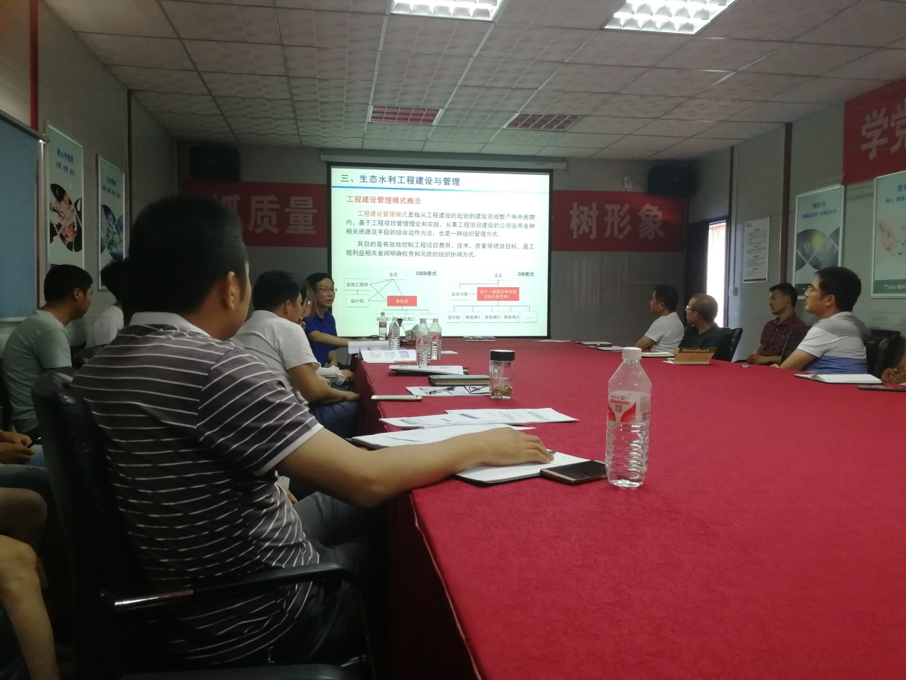 2018年6月14日下午,“生态水利 规划、建设与管理”专题讲座在户县召开。本次会议由西安建工河域治理产业研究中心举办。参加会议的有建工集团河域治理中心管理层领导以及行政层人员等三十余人。中心朱老师、仉振宇、梁文娟参加了本次会议。