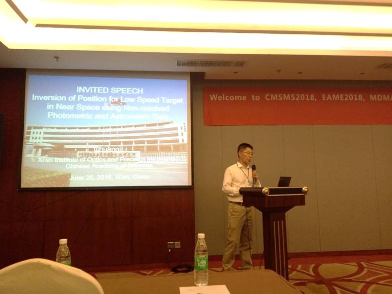 25日上午,首先由中国科学院西安光学精密机械研究所研究员李创进行主题为“Inversion of Position for Low Speed Target in Near Space Using Non-resolved Photometric and Astrometric Data”的特邀报告。随后由来自北京大学、南京大学、兰州交通大学、中国矿业大学、洛阳光电技术发展中心等十余所科研机构及高校的专家学者,分别针对自己的论文研究内容进行主题汇报。25日下午,由来自复旦大学、长安大学、西南科技大学等高校及科研机构实验室的专家学者分别进行专题演讲。