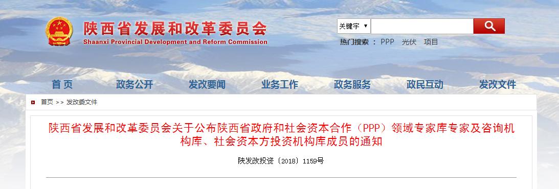 2018年9月14日,陕西省发展和改革委员会公布了关于陕西省政府和社会资本合作(PPP)领域专家库专家及咨询机构库、社会资本方投资机构库成员名单。中心朱老师入选陕西省政府和社会资本合作(PPP)领域专家库专家。