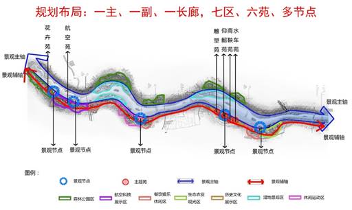 在石川河综合整治规划编制的过程中,课题组结合“水润航空城•生态阎良区”的城区发展理念,以河道治理和防洪工程为重点,综合布局水面景观、水文化、水土保持、环境保护工程,在保障区域防洪安全的同时,提出积极建设石川河绿色生态人文长廊,努力打造“蓝天碧水映断塬,生态人文石川河”的美丽胜景。规划工程布局过程中课题组融合水工程、水文化、水景观等多要素,提出一主、一副、一长廊,七区、六苑、多节点的景观布置格局。